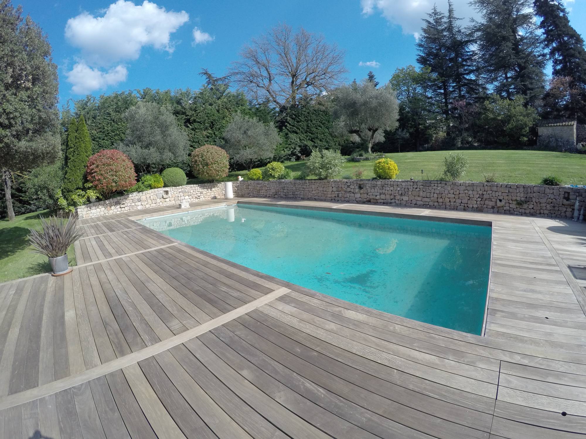 Dégrisement, nettoyage d'un entourage de piscine terrasse en Ipe à Saint Maximin la Sainte Baume, réalisé en 2009.