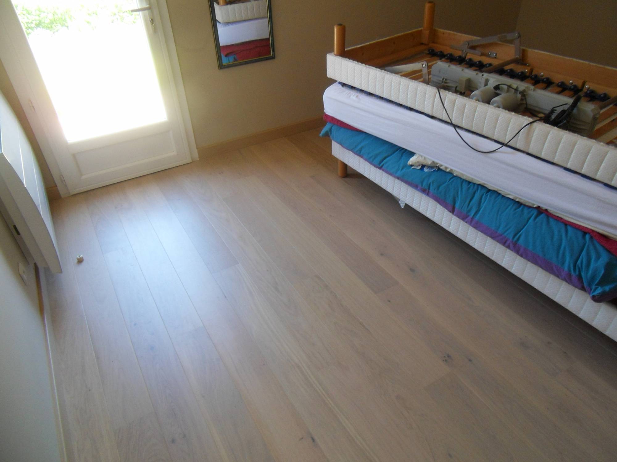 Réalisation d'un parquet chêne contrecollé Quick-Step vernis ultra mat dans cette villa à Le Val (Var).
