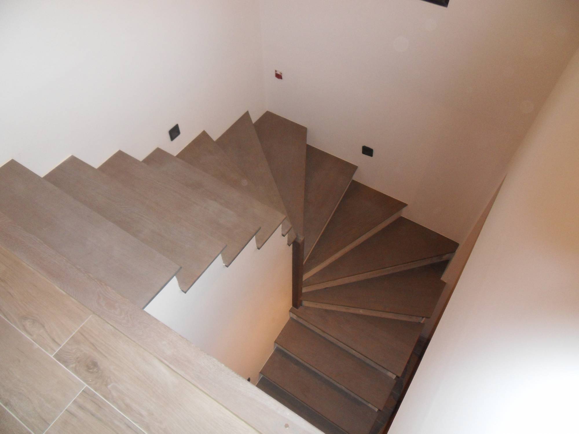 Ensuite, vient l'ajustage des marches en chêne massif teinté et vieilli.