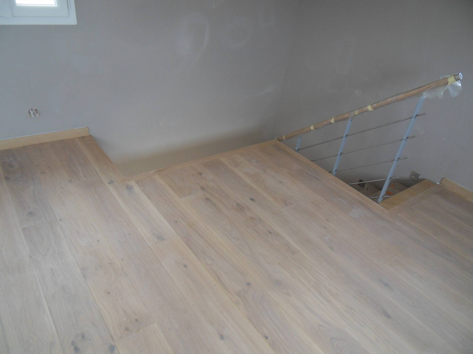 Le choix de nos clients, c'est porté sur un parquet en chêne aspect bois brut de la parqueterie Huot Parquets.