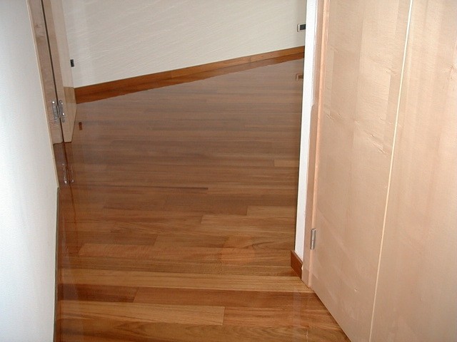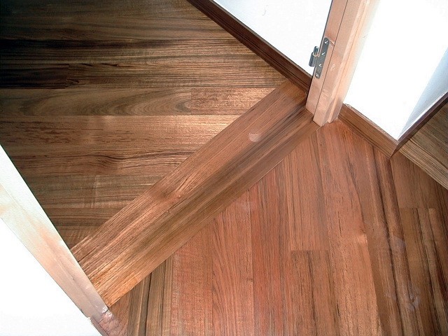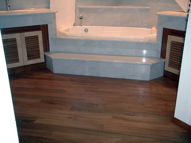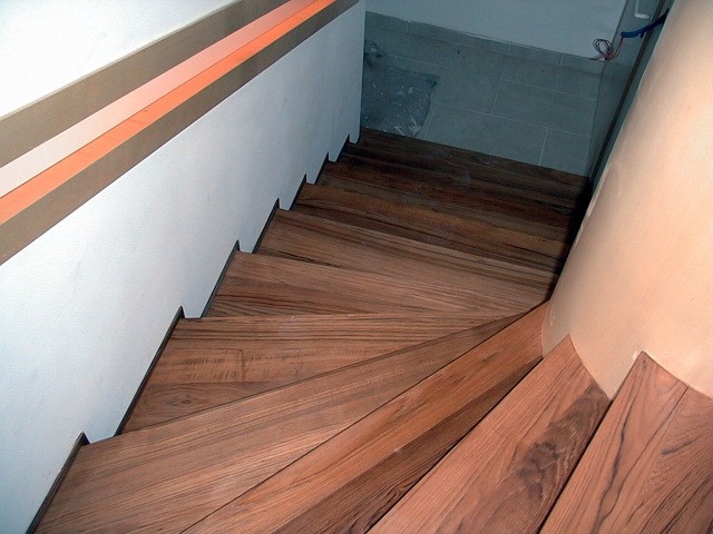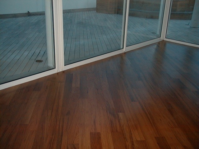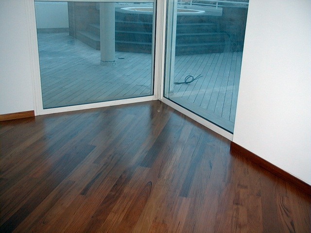 L'utilisation de bois noble exotique apporte une chaleur et une couleur incomparable à votre intérieur. Ici, une de nos réalisations en parquet massif en teck à Sanary sur Mer dans le Var.