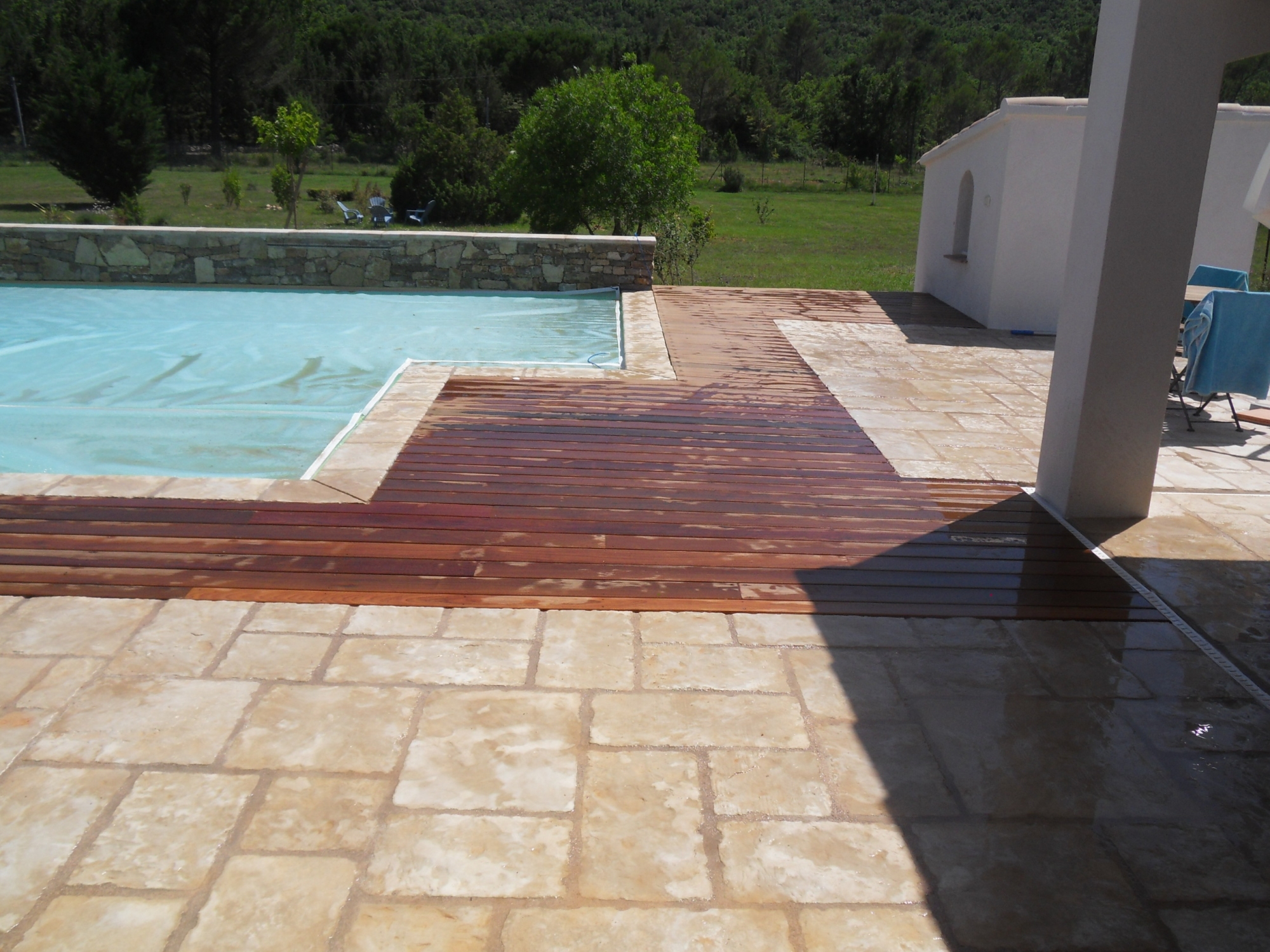 Réalisation et incorporation de terrasse en IPE autour d'une piscine à Brignoles dans le Var.