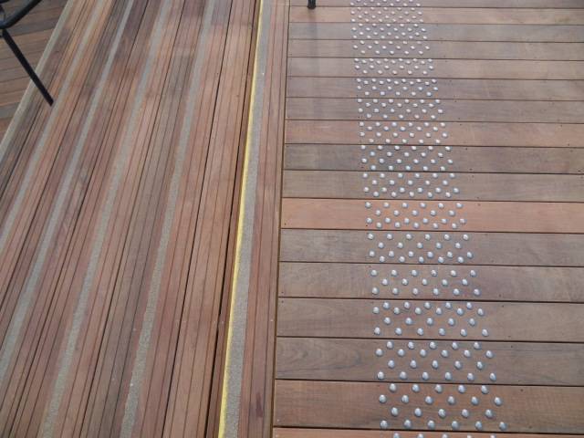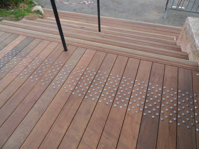 La Société Provençale de Parquets et Revêtements a effectué la rénovation de la salle des fêtes de Bras dans le Var, création d'une terrasse en IPE sur lambourdes, reprofilage de l'emmarchement, remise aux normes handicapés, clous pododactiles en inox pour repérage sensoriel.