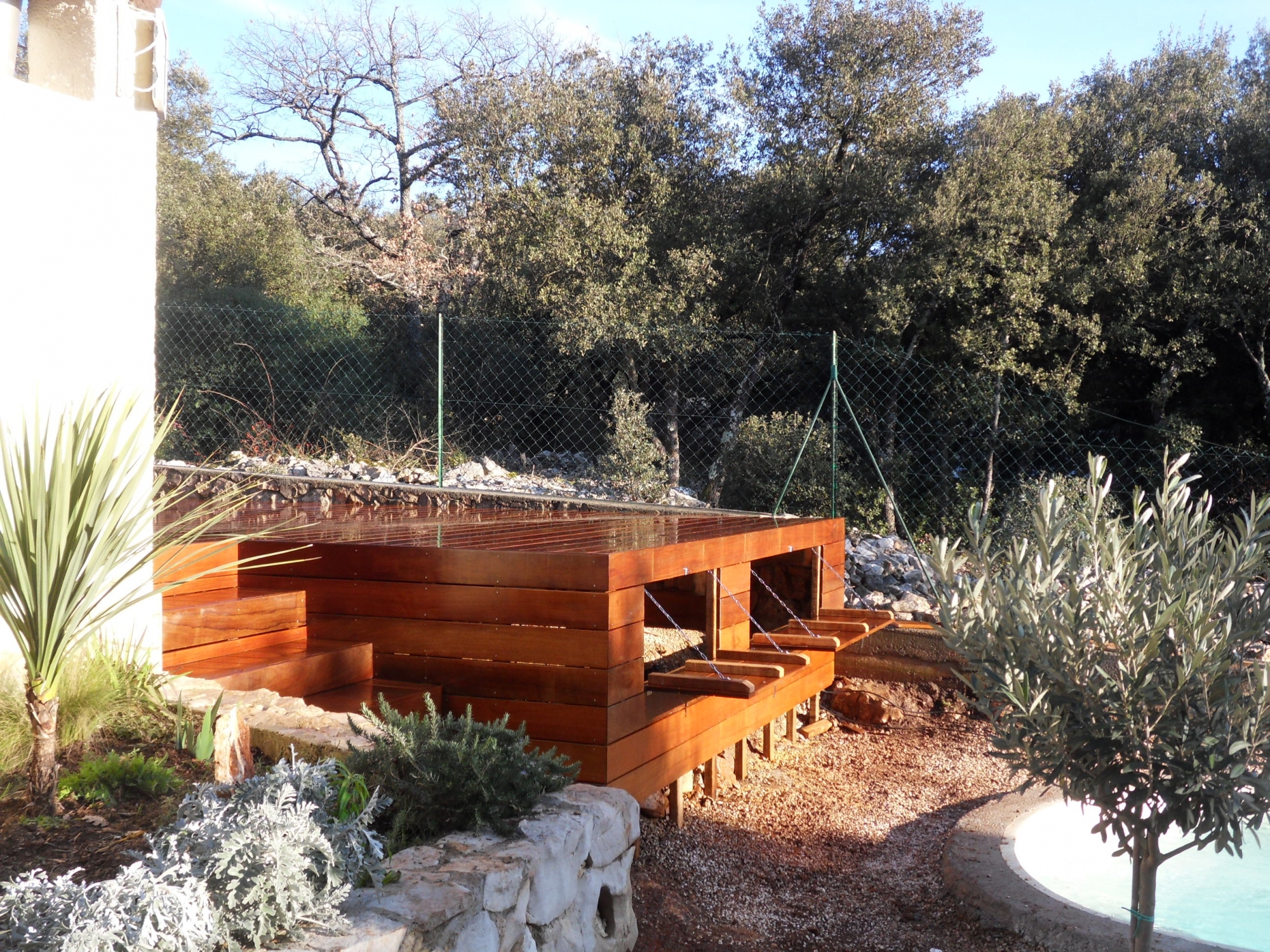 Création de terrasses en Ipe en surplomb.